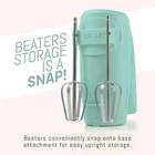 Hand Mixer Electric Kitchen Aid Mixer Handheld Mixer 5 Speed Cake Mixer Description 5 SPEED SWITCH control to quickly cycle through mixing speeds for all your mixing, whipping and baking needs. 2 STAINLESS STEEL extra wide mixing beaters that are dishwasher safe and easily mixes contents faster than smaller pointed beaters. BUILT-IN SAFETY FEATURE prevents accidental ejection of mixing beaters during operation to avoid big messes. SIMPLE EJECT BUTTON allows user to quickly release stainless steel mixing beaters for easy cleanup. BUILT-IN BOWL REST feature allows for extra stability to stand the mixer upright during pauses in mixing and compact storage.