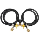 WIDELY APPLICATION: The propane 2 way Y splitter hose is with all equipment with QCC1/Type 1 connection and 1 lb to 20 lb propane tank, suitable for camping stoves, tabletop grills, tailgates, outdoor heaters, coleman camping stove, weber Q grill and more 1-lb portable propane equipment. EASY & CONVENIENT: This propane way splitter hose is a perfect for the 16.4oz/1 pound green small tank, and it can be directly connected to a 1-pound portable propane device without an additional regulator. UPGRADED DESIGN: The 2 way design allows you to connect appliance easily at the same time to the propane tank by hand without any tools. Equipped with a control valve on each way of the hose, convenient to control the flow. SUPERIOR QUALITY: Both adapters are made of solid brass, and the hose is made of high quality rubber, which allows a long-lasting life of the product. 350PSI propane tank outlet pressure, and the over flow&heating protection design can ensure safety. EXCELLENT SERVICE: We are confident with our products, so we provide year Service! If you have any questions, Please feel free to us. We will give you a satisfactory answer within 12 hours.