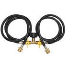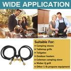 WIDELY APPLICATION: The propane 2 way Y splitter hose is compatible with all equipment with QCC1/Type 1 connection and 1 lb to 20 lb propane tank, suitable for camping stoves, tabletop grills, tailgates, outdoor heaters, coleman camping stove, weber Q grill and more 1-lb portable propane equipment. EASY & CONVENIENT: This propane two way splitter hose is a perfect replacement for the 16.4oz/1 pound green small tank, and it can be directly connected to a 1-pound portable propane device without an additional regulator. UPGRADED DESIGN: The 2 way design allows you to connect two appliance easily at the same time to the propane tank by hand without any tools. Equipped with a control valve on each way of the hose, convenient to control the flow. SUPERIOR QUALITY: Both adapters are made of solid brass, and the hose is made of high quality rubber, which allows a long-lasting life of the product. 350PSI rated propane tank outlet pressure, and the over flow&heating protection design can ensure safety. EXCELLENT SERVICE: We are confident with our products, so we provide one year Service! If you have any questions, Please feel free to email us. We will give you a satisfactory answer within 12 hours.