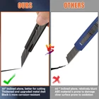 Upgrade Blade: The utility knife blade is made of high grade carbon steel, The upgraded blade angle has been designed with a larger bevel, which is better for cutting and also improves blade durability and cutting accuracy. The 9mm blade has 8 razor-sharp snap-off segments, and in addition, the black blade provides additional corrosion resistance over the regular blade, which extends the life of the blade. Upgrade Metal Handle: The box knife handle is made of metal casing material and thickened, Provides a comfortable feel and grip for stability and comfort when using the box cutter, as well as some protection from damage or loss of the internal blade. Box Cutter Retractable: The retractable design is easy to use and store, you can press the slide to control the retraction of the blade, and the locking function allows you to operate even with one hand, making your work easier. Multipurpose Tool: Utility knife retractable can be used for cardboard, foam board, paper, plastic, box, tape, crafts, vinyl, leather, PVC materials, etc. Practicality making it an home office essentials too, Can also be used as a spare utility knife in the garage Package Contains: You will receive 6 sets of utility knives retractable, Box packaging makes storage more convenient.