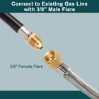 Versatile Converter : Just attach 3/8" male flare fittings at both ends to convert them into any fitting form you require, allowing you to connect multiple devices such as a gas grill, propane burner, and so on Extension Hose : The 6-foot length is enough to maintain a safe distance between your propane appliance and the fuel tank. Also, you can use your grill more flexibly Premium Solid Brass : Corrosion-resistant brass fittings provide a good seal against leaking hose ends. Ensures your safety in use Sturdy Stainless Braided : Braided hose resists damage from friction and animal bites, You can rest assured using the lp hose outdoor Standard Connector : 3/8" Female Flare x 3/8" Female Flare (I.D.: 9/16"). Ensures it can fit your fittings