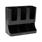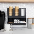 Multipurpose Coffee and Tea Condiment Organizer Keep your coffee and tea necessities neatly organized with this versatile condiment organizer. With six distinct compartments, it offers convenient storage for coffee and tea cups, lids, and a variety of related condiments such as sugar, sweeteners, and creamers. This organizer is perfect for decluttering your office breakroom, hotel coffee bar, or home kitchen countertop, eliminating the need to rummage through drawers or clear clutter from surfaces. But it's not limited to coffee and tea supplies. It also serves as an efficient beverage station in bed and breakfasts, hotels, and conference centers. It can accommodate condiment packets too, from lemon and honey to ketchup and mustard. Planning a party or backyard barbecue? This lightweight organizer offers portable convenience. Easily move it around to suit your event's needs. For space-saving efficiency, place the organizer on a table or countertop, or mount it on the wall. Whether it's for the office, hospitality industry, or an avid coffee and tea enthusiast, this condiment organizer makes an excellent gift. Versatile storage solution: This cup and condiment organizer is perfect for storing cups, lids, and coffee/tea accessories, but can also be used for organizing other condiments or office supplies Efficient condiment organization: The two-tiered design of the organizer allows you to easily see and access your condiments, saving you time and effort in the morning rush Stylish and space-saving: With its stylish design and compact size, this organizer requires no assembly and seamlessly blends with most existing decor, while maximizing your available space Durable and easy to clean: Made from durable plastic, this organizer is built to last and can be easily cleaned with warm water and mild dish soap, ensuring long-lasting use Optimal dimensions: Measuring 13 inches long x 6.4 inches deep x 11.5 inches tall (33.02 x 16.26 x 29.21 centimeters), this organizer fits neatly on your office desk or kitchen countertop, providing efficient storage without taking up too much space