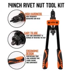 Product Description 70PCS 14'' Rivet Gun Kit Rivnut Thread Setting Tool Nut Setter NutSert Metric Various Mandrels - The rivet nut tool equipped with 7pcs interchangeable mandrels (M6, M8, M10, 1/4"-20, 3/8"-16, 5/16"-18). Sturdy and Durable - The riveting nut tool is made of chrome vanadium alloy steel. The surface is heat treated to prevent corrosion and improve the durability and strength of the tool. Easy for Use - The mandrel of the rivet nut can be easily removed by hand for replacement or maintenance of the mandrel. Wide Applications - Ergonomic long arm and rubber handle provide enough strength to easily rivet nuts without any unnecessary trouble. Package - 1 x 14inch Riveting Pliers, 7 x Mandrels, 70 x Rivet Nuts, 1 x Tool Case, 1 x Product specification 1 x Multi-function wrench. About Us Payment Shipping Returns Contact Us 1. Unless specified otherwise, all our products are IN STOCK and are shipped from USA Local warehouse - Not Overseas! 2. We provide a 30 day Satisfaction Guarantee or your money back (provided items are in the same new and resaleable condition.) 3. We have a PayPal Verified Business Account, please buy with Confidence! 4. Every item will be tesrted before send.We know our products well and if we don't have the answers we will do our best to find them for you! 5. Our friendly team look forward to serving you! Your satisfaction is our No.1 Priority We will do our best to satisfacy you. 1.Paypal, Credit Card, G Pay etc, many payment way is accepted. 2.Please be sure your shipping address is correct before make a payment. 1.We will ship out the item within 1-3 business days after comfirming the payment, appreciate your patience. 2.If the items are broken on the way(we will check the orders clearly before we sent them),please contact us in 3 days you received it. We will send you a new one or refund your payment. 1.We stand behind every buyer.Items can be returned for exchange or refund within 30 days. 2.Please contact us when you have any confusion of our item, we will solve the trouble for you as soon as possible. 1.This is professional Seller.We will reply your message within 24 hours. 2.Please contact us whenever you have any question about the item. We will deal with it as soon as possible. 3. If you are unhappy with the item or our service,please Contact Us before leave feedback,just give me a chance,thank you! About Us 1. Unless specified otherwise, all our products are IN STOCK and are shipped from USA Local warehouse - Not Overseas! 2. We provide a 30 day Satisfaction Guarantee or your money back (provided items are in the same new and resaleable condition.) 3. We have a PayPal Verified Business Account, please buy with Confidence! 4. Every item will be tesrted before send.We know our products well and if we don't have the answers we will do our best to find them for you! 5. Our friendly team look forward to serving you! Your satisfaction is our No.1 Priority We will do our best to satisfacy you. Payment 1.Paypal, Credit Card, G Pay etc, many payment way is accepted. 2.Please be sure your shipping address is correct before make a payment. Shipping 1.We will ship out the item within 1-3 business days after comfirming the payment, appreciate your patience. 2.If the items are broken on the way(we will check the orders clearly before we sent them),please contact us in 3 days you received it. We will send you a new one or refund your payment. Returns 1.We stand behind every buyer.Items can be returned for exchange or refund within 30 days. 2.Please contact us when you have any confusion of our item, we will solve the trouble for you as soon as possible. Contact Us 1.This is professional Seller.We will reply your message within 24 hours. 2.Please contact us whenever you have any question about the item. We will deal with it as soon as possible. 3. If you are unhappy with the item or our service,please Contact Us before leave feedback,just give me a chance,thank you! You may also like 4 Gauge Car Audio Cable Kit Amplifier Install Amp RCA Subwoofer Sub Wiring 2300W 17.49 USD 18.89 USD Free shipping 7% off 42 Tips 96W Universal Power Supply Charger for Laptop Notebook AC/DC Power 13.99 USD 15.99 USD 0.99 USD 13% off Car Steering Wheel Tray Desk Two Sided For Laptop Drink Food Work Table Holder 9.99 USD 0.49 USD 9PC ABS Socket Organizer 1/2 3/8 1/4 inch Drive Socket Rail Holders Wall Mount 18.49 USD Free shipping Commercial LED Outdoor Dusk to Dawn Solar Street Light Road Area Lamp USA 22.99 USD 24.99 USD Free shipping 8% off Oven Stove Igniter for Samsung DG94-00520A Fast Shipping 16.99 USD Free shipping powered by