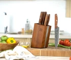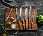Enhance Your Culinary Artistry with the 7-piece Knife Set: This versatile kitchen knife set with block includes an 8" chef's knife, an 8" bread knife, an 8" slicer knife, a 7" santoku knife, a 5.5" serrated utility knife, a 3.5" parer knife, and a hard wood knife block, providing a comprehensive collection for chopping, slicing, and dicing fruit, bread, meat, fish, and vegetables. The quality and precision of this set will help you achieve culinary excellence with ease. Superior Craftsmanship and Lasting Durability Unleashed: Want tough, stainless, and durable sharp kitchen knives? The knife block set checks all the boxes with its 100% high-carbon stainless steel knife construction that incorporates the latest in forging technology. With the steel's HRC rating of 60+/-2 and general maintenance, the blade retains its sharp edge for extended use, giving your kitchen the ultimate cutting experience. Experience Comfort and Style in an Elegant Design: The ergonomic design of the cooking knife set effortlessly balances efficiency, style and comfort. The unique beauty of the kitchen knives is highlighted by a blade surface with a healthy antioxidant coating, resulting in a dynamic 13-15° per side angle, honed to perfection. The design of knife sets for kitchen with block promotes maximum maneuverability of the cutting edge and ease of use. Soft and Secure Grip with Every Slice: The handle of the professional knife set is made of soft American ASH wood, which provides an excellent, secure grip even when wet. The handle design also minimizes wrist tension for maximum comfort and safety with every use. Preparing food with knives has never been more relaxing. Give the Gift of Superior Kitchen Craftsmanship: The cutlery knife block set comes in a premium box and includes a protective cover, making it an ideal gift for professionals and beginners alike. We offer a 30-day money back and 24-hour . So why wait? Get the perfect knife set today!