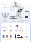 Multifunctional Stand Mixer make your kitchen life more easily and help you make various delicious food as well! Dimensions: 14.9 X 12.5 X 22.8” Voltage: 110V Electric Frequency: 60Hz Max Power: 2000W Color: Silver, Black, Red, Green, Blue, Grey 8-IN-1 Multifunctional Stand Mixer: 8.5 quarts of high capacity stainless steel mixing bowl can contain 30 egg whites. Equiped with meat grinder, 1.5L juice cup and various accessories like cookie, sausage, noodle, you could mix bread dough, thick batter, whipped cream, and make cookies, sausages, meat balls or juice 6+F Speed and Planetary Mixing: The multifunctional electric mixer has a 660W pure copper motor, so you choose from 6 speeds and F (fermentation function), whether it's slow stir or a fast mix. It can also ferment dough, which is perfect for different recipes. The planetary mixing system ensures thorough and uniform mixing so to make food taste better Digital Display and Splash Guard: Using stand mixer's digital display screen, you could set any speed and time you want with touch control, making it easier for you to complete other tasks, saving your time, and accelerating your efficiency. The splash guard within can help add ingredients without making mess in your kitchen Tilt Head & Easy Clean: The tilt head allows for easy installation or removing of bowl and accessories. And all accessories of the kitchen mixer can be cleaned in the sink with clean water easily