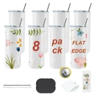 flat edge tumblers [Flat Edge] : This flat bottom is better for sublimation and won't make your bottom a mess. More suitable for your full design pattern. Package including: 8pcs 20oz sublimation tumbler,8pcs metal straw and straw brush,8pcs sliding lid ,8pcs Silicone base ,8pcs window white box 8pcs shrink flim If you choose heat press machine to sublimate your tumblers,Recommended time is 50 seconds,Recommended Temperature is 334 Degree Fahrenheit,If you choose oven to sublimate your tumbler, Recommend time is 6 minutes,Recommended temperature is 300 Degree Fahrenheit; Using shrink wrap can make your heat sublimation patterns better 20oz sublimation tumblers ,Double-Wall stainless steel Vacuum insulated ,keep cold for a night . absolutely straight, same size between top and bottom,and also the tumbler is ready with a polymer coating for Dye sublimation prints using heat press or convection oven.so it can allow you design your cups with your perssonal picture, which can be special gift for your friends or anybody you care.