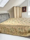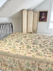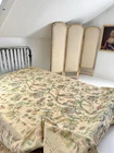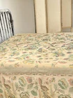 Welcome to The Textile Trunk ~ Thank you for over 25 wonderful years of helping bring these beautiful antique textiles and decorative items to life again! This lovely vintage American bedspread dates from around the 1940s–1950s and is woven in a cotton blend with a charming Jacobean-style floral pattern. I'm not sure what the fiber content it, it feels to be to be a rayon cotton ~ The design shows scrolling branches, tulips, and stylized blooms in gentle tones of green, rose, gold, and cream on a natural ground ~ The edges are beautifully finished with a gathered ruffle that adds movement and texture, giving it that cozy, timeworn farmhouse feel ~ The textile has a pleasing weight and drape, and the colors have mellowed with age into the prettiest muted pastels. It’s perfect for adding warmth and history to a cottage, country, or shabby interior ~ lovely too for upholstery or sewing projects where soft patina is desired ~ MEASUREMENTS: This bedspread measures approximately 91 inches wide by 107 inches long. The central panel without the ruffles is about 60 inches wide ~ CONDITION: This lovely textile is in as found, not freshly laundered condition. Lovely condition!~ Light signs of time and use only ~ Please use the zoom feature to view the exact condition. It’s such a joy to give these vintage pieces new life in our modern homes, keeping their story alive while celebrating sustainable, ecofriendly living ~ Inventory: T 204