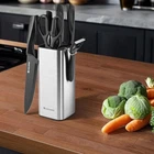 MULTI FUNCTIONAL KNIFE SET: This 8-in-1 kitchen knife set includes: Chef Knife, Bread Knife, Slicer Knife, Utility Knife, Paring Knife, Scissors, Peeler, Knife Stand, and Sharpener.It is a complete set of multifunctional kitchen utensils, allowing you to better prepare ingredients ERGONOMIC DESIGN: It can perfectly fit any hand shape, with a perfectly balanced handle that is easier to grip, improves accuracy, reduces hand fatigue, and makes food preparation simpler. The anti slip design makes the knife safer to use NON RUSTING NON STICK KNIFE: Using a special coating, it can easily cut any food without sticking to the knife. Made of stainless steel, it will not rust for a long time and still maintain its sharpness,with a built-in knife sharpener and Knife Stand DISHWASHER WASHABLE: Our knife set can be washed in a dishwasher without damaging the blades or the dishwasher. Just put it in and take it out to use, saving you time and allowing you to prepare food faster and better PERFECT GIFT: This knife set is suitable for any occasion, whether it's a wedding, birthday, Thanksgiving, or Christmas. Receiving this gift will be an unexpected surprise