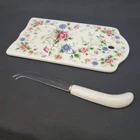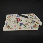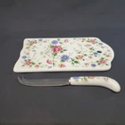 Andrea by Sadek Porcelain Floral Cutting Cheese Board With Matching Knife. Measurements in photos. Condition is Pre-owned. Shipped with USPS Mail