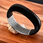 EASY PRESS EASY CLEAN: The large, comfortable handles and ingenious design make squeezing a breeze, even for those with weaker grips or small hands. What's more, clean up is super simple too. Just rinse under water or run through the dishwasher. STAINLESS STEEL: It won't rust, and won't break! The sleek design makes this the Easiest most Efficient Garlic Press you can use! LITTLE EFFORT: Garlic is easily scooped from the center of the press; No useless scraping or squeezing; Simply push down and rock back and forth; Easy for those with arthritis! Package including: 1 x Stainless steel garlic press. Notice Because garlic is curved, it is elastic. The garlic press also has a curved bottom plate. Its focus is concentrated. Before starting to use, press the garlic gently until the bottom can be evenly placed on the table. Then press back and forth repeatedly. This prevents the garlic from bouncing out. more easily done Easy To Clean Rinse clean under water-tap or throw in the dishwasher. Say goodbye to garlic odor fingers! How To Use It Perfectly? 1. Remove the garlic skin with 2. Remove the garlic head with a knife 3. Press down vertically till garlic cracks and a ' back and forth rocking' motion. If the garlic is too big to operate, cut it in half, it will be easier to rock. 4. Wash the garlic with a flowing sailor (solved in 1-2 minutes), 1. Better Quality, Better Material: our garlic press set can be used for more than 2 years, while others may be less than a year. 2. Better Arc Design: easier to mince garlic, which can save more time.
