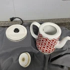 Note small chip on top - see picture Looking for a fast and efficient way to boil water? Check out this BELLA Electric Kettle! With a 1.5 liter capacity and 1200W power, you can quickly heat up water for your tea, coffee, or any other hot beverage. The ceramic material ensures durability, while the swivel base allows for easy handling. The kettle has a beautiful red painted finish that will add a pop of color to your kitchen. Hand washing is recommended for this water kettle to maintain its quality. Its compact size of 10.5 inches in height and 6.25 inches in width makes it a great addition to any small kitchen. This product is perfect for anyone looking for a reliable and stylish water kettle.