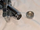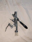 The photos show everything. Not terribly old, possibly vintage? This counter mount corkscrew is a great addition to any home or commercial bar. I am not sure what particular metal it is made of, possibly chrome-plated brass? I do not know , but I do know that a magnet does not attract it . You can see some light pitting or some type of flaw in the chrome plating, not terribly visible, but you definitely can see it and feel it. It has a nice black wood handle. It weighs 5 lbs., approximately . It works just fine. Not much more to add that the photos do not show. They are the description and they show the condition. Please use the zoom feature and ask any questions you may have. This will ship using UPS, FedEx or USPS, whichever I select at time of shipping.