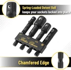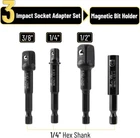 Bates- Impact Socket Adapter Set with Magnetic Bit Holder, 4 pcs, 1/4", 3/8", 1/2" Hex Shank, 3/8 Adapter for Impact Driver Socket Set, Impact Drill Socket Set for Drill, Impact Socket Adapter Set Product Details Brand: Bates Choice Drive System: Square Finish Type: Painted Number of Pieces: 4 UPC: 810168262109 Manufacturer: Bates Choice Item Weight: 3.84 ounces Package Dimensions: 2.87 x 2.28 x 0.67 inches Country of Origin: China Item model number: NBVM004B425VS Finish: Painted Batteries Included?: No Batteries Required?: No Brand: Bates Choice Drive System: Square Finish Type: Painted Number of Pieces: 4 UPC: 810168262109 Bates impact socket adapter set with magnetic bit holder includes 4 pieces, providing a versatile solution for various tool applications. Made from heat-treated Chrome Vanadium steel, these adapters offer exceptional durability, strength, and resistance to wear. The set features 1/4", 3/8", and 1/2" socket adapter sizes, along with a magnetic bit holder, ensuring compatibility with most power tools. Designed with a corrosion-resistant black phosphate coating, these adapters are built to last in heavy-duty and professional settings. The included holder keeps all pieces organized and accessible, making it convenient to store and transport the set. Bates impact socket adapter set with magnetic bit holder includes 4 pieces, providing a versatile solution for various tool from heat-treated Chrome Vanadium steel, these adapters offer exceptional durability, strength, and resistance to set features 1/4", 3/8", and 1/2" socket adapters sizes, along with a magnetic bit holder, ensuring compatibility with most power tools.Designed with a corrosion-resistant black phosphate coating, these adapters are built to last in heavy-duty and professional included holder keeps all pieces organized and accessible, making it convenient to store and transport the set.