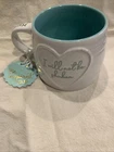 The Be Inspired Coffee Mug is a modern, round ceramic cup with a capacity of 19 fl oz. It features a solid blue color with a happy character and loving family theme. The mug is microwave safe and perfect for all occasions. The brand is White and the model is from the Scripture Collection. It weighs 0.4 lb and measures 3.5 inches in height and 4 inches in width.