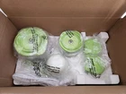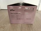 BEAR BABY FOOD MAKER SET - GREEN SAY GOODBYE TO STORE BOUGHT BABY FOOD AND HELLO TO HOMEMADE GOODNESS! This all-in-one food processor is designed to help you prepare healthy and delicious purees, juices, and smoothies for your baby in just a few minutes. Easily chop a variety of vegetables, meats, and fruits into different particle sizes according to your needs. SPECIAL FEATURES Dual-cup, Dual-blade: Featuring a distinctive dual-cup, dual-blade design. This unique feature allows for effortless separation of raw and cooked foods, ensuring impeccable hygiene and flavor retention. Whether you're blending fresh fruits and vegetables or pureeing cooked meals, our double cups and blades streamline the process, guaranteeing quick and efficient meal preparation. Easy to Use: Equipped with three sharp blades and a high-power motor, this baby food maker gets the job done in seconds. Press to start, release to stop, Make complementary foods of different consistency for your baby. The baby food maker operates quietly, allowing you to prepare meals for your baby without disturbing their nap time. Safe and Sturdy: Crafted from premium, food-grade glass bowl and stainless-steel blades, this baby food maker boasts a built-in safety lock to avert accidents. Ensuring your little one's mealtime is worry-free, it's fashioned from BPA-free materials, guaranteeing their food is safe and devoid of harmful chemicals. Easy to Clean: The baby food blender can be easily disassembled and washed. The large capacity bowl and accessories are dishwasher safe, making it easy to clean and maintain. INCLUDED What's in the Box: Bear baby food processor set includes 1 * baby food maker with 2 Glass Bowls (0.6L+0.3L), 4 * baby food containers with 1* tray, 2 * silicone spoons BRAND NEW IN ORIGINAL BOX AND PACKAGING... OPENED BOX TO INSPECT CONTENTS... GOOD LUCK!