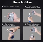 *** BEER CAN OPENER: The beer can opener grabs and removes the lid from the can! No more pushing down on the lid or removing it with your fingers. Use as a beer can opener or soda can opener. *** UPDATED DESIGN : The latest design features improved gripped spring-loaded handles that are left/ right hand friendly and removes the top of the can to keep fingers liquid-free. This update to the original can opener serves up a smooth performance as your favorite can opener bar tool! *** RIP AND SIP: This can opener is the versatile bar tool that works on domestic, imported, and craft beers, soda, energy drinks, canned wine and cocktails, iced coffee, and much more. Its patented design removes the top of most 12 to 16 oz aluminum cans quickly and with ease. *** SAFETY FIRST: It opens cans quick and clean, leaving a smooth edge so you can enjoy your beverage without worrying about sharp edges or aluminum slivers. Easy to use and even easier to enjoy! *** PORTABLE CAN OPENER: Compact and portable, take this beer can opener wherever you go! Parties, camping, travel, work, open your friends and family's beverages so they enjoy the full flavor of their canned drink like never before. *** INSTRUCTIONS: 1. Align the tab on the can with the opening in the center of the opener. Then place the tool down on the can and twist counter-clockwise to lock the tab on the lip of the tool. 2. Squeeze the handle and grip the bottom of the can where it is most firm. 3. Rotate the can counter-clockwise for at least 360 degrees until the can top stops rotating. 4. Release the handle and pull the opener off the can. If the lid isn't easily removed, repeat steps 2-3. Do not remove the lid from the can with fingers. 5.Push the tab off the opener through the whole in the cover. 6. Enjoy Drinking Beer. *** QUALITY SERVICE: If The Product Is Damaged Or Has Problems Upon Arrival, Please Directly Contact Us For Satisfied Solution. Any Other Problem, Please Also Contact Us. We Sincerely Care About Every Customer's Shopping Experience!