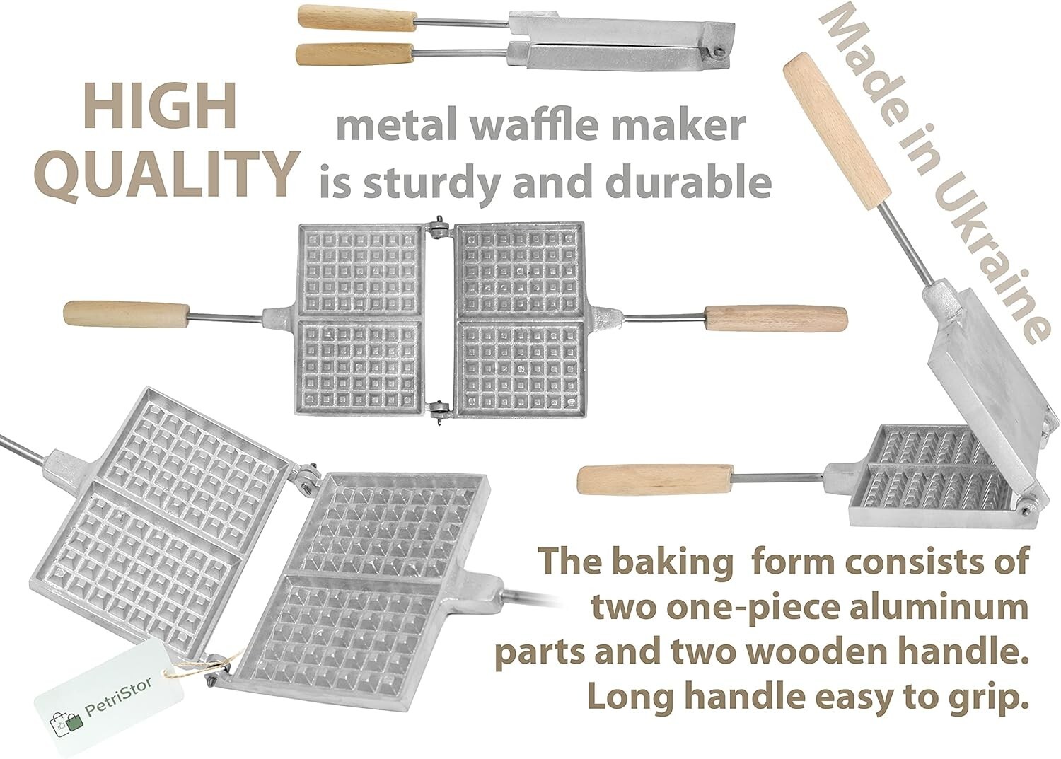 eBay Selling Listing Belgian Mini Waffle Maker Cookie Versatile and Delicious : Elevate your culinary creations with this Belgian-style waffle maker! Perfect for crafting tasty waffles and exploring a variety of recipes, from basic to gourmet. Built to Last : Designed for durability, this waffle maker can provide a lifetime of delicious results with proper care. Its sturdy construction ensures it can handle regular use with ease. Quality Design : The waffle iron features a compact case that securely closes on both sides, making it convenient to use and easy to maintain. It is also resistant to high temperatures and moisture. Specifications : Size : 150 mm x 100 mm (6.5 in x 4.3 in) Weight : 800 g (1.8 lb) Made in Ukraine Features : Safe for use on gas stoves with no power consumption required. Long handle for easy gripping and heat insulation, allowing for effortless opening and closing. Made primarily from high-quality aluminum alloy, this waffle maker is food-grade safe, sturdy, and durable. Ideal for creating thick, delicious waffles with sweet fillings and fruits, beautifully presented for dessert—perfect for home kitchens and impressing guests. Easy to Use : Enjoy hassle-free cooking and reduced cleanup time. This waffle maker allows you to create homemade recipes effortlessly, even without special cooking skills. Get ready to impress with your culinary talents and enjoy delightful homemade waffles any time!
