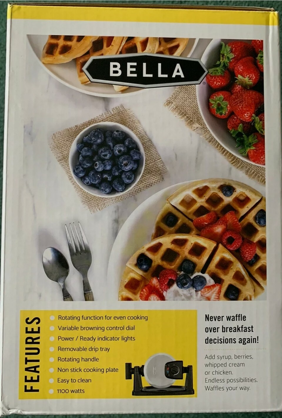 BELLA Classic Rotating Belgian Waffle Maker, Polished Stainless Steel. Condition is "New". Shipped with USPS Priority Mail.