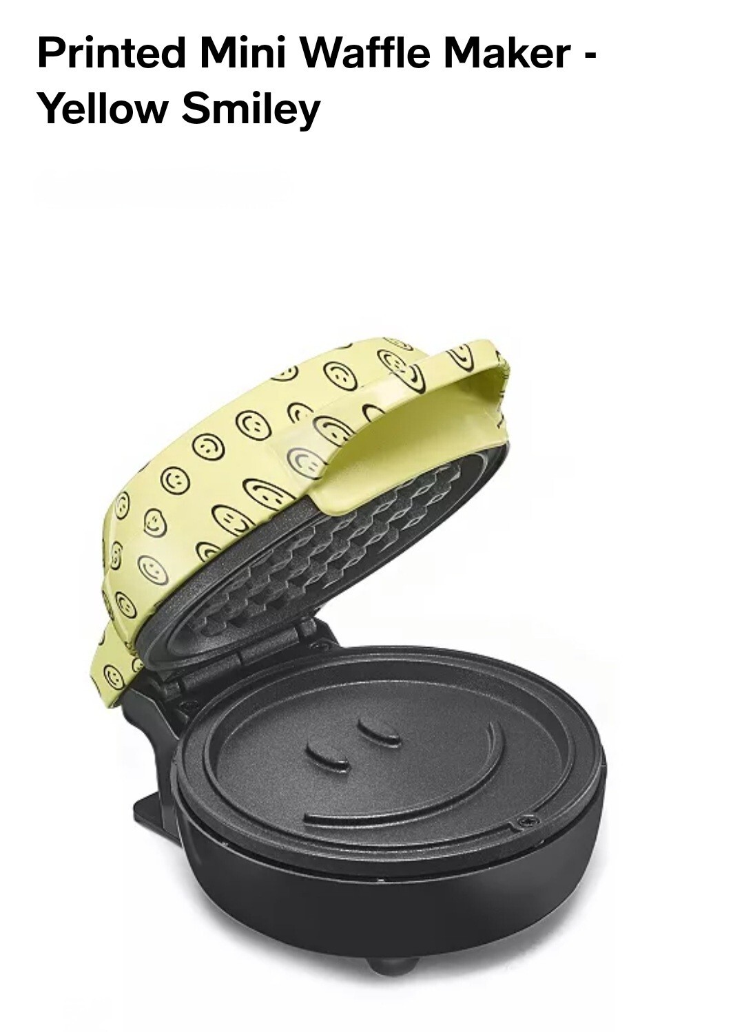 Introducing the Bella Mini Smiley Face Waffle Maker, the perfect addition to any kitchen. This mini -sized waffle maker features a round shape and a capacity of 1. The electric power source with a power of 350W ensures quick and even cooking. The yellow color and smiley face design adds a fun and playful touch to your dining experience. This waffle maker comes with recipes and an instruction manual for easy use. The indicator light and non-stick surface make cleaning up a breeze. Made in China, this waffle maker is a must-have for any waffle lover.