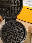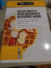 This BELLA Rotating Waffle Maker, model GH-805, is a fantastic addition to any kitchen. With its easy one-flip operation, making delicious waffles has never been easier. The waffle maker is made of high-quality ceramic titanium material that ensures durability and easy cleaning. The 1100W electric power source ensures quick heating, and the non-stick feature makes it easy to remove your waffles without damaging them. The waffle maker comes with a drip tray, making it a mess-free experience, and the silver color and sleek design will fit in with any kitchen decor.