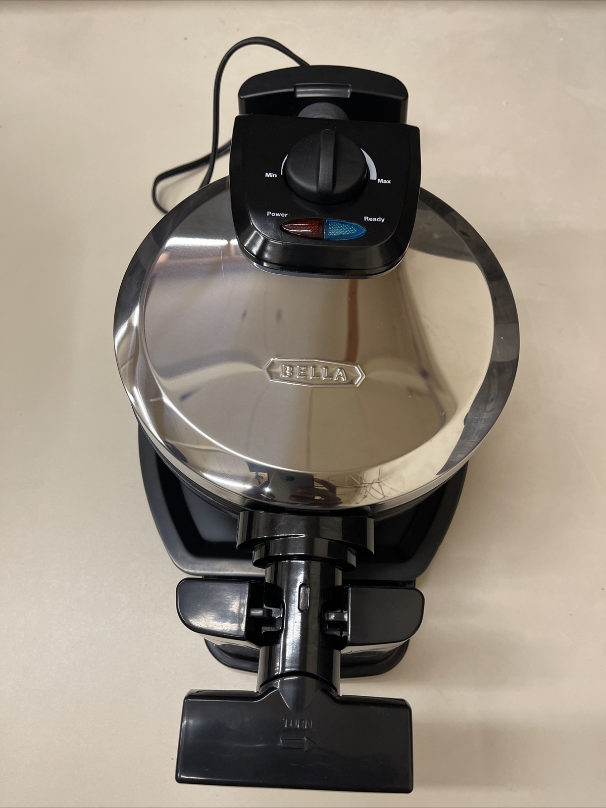 Make delicious waffles easily with the Bella 14787 Rotating Waffle Maker. This electric waffle maker has a black color and is made of stainless steel and plastic. It has a rotating feature, making it easy to flip the waffle for even cooking. The waffle maker has a non-stick surface, making it easy to clean and dishwasher safe. It also has an indicator light and heat-resistant handle for added safety. With a capacity of 1 waffle, this waffle maker has a dimension of 15.3 x 6.7 x 10 inches and weighs 5.2 pounds. The package comes with a non-stick pan and has a power of 1100 W. Perfect for any kitchen, this waffle maker is a great addition to your small kitchen appliances.