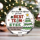 Best Team Ever Christmas 2024 Ornament, Custom Employee Ornaments, Coworker Christmas Gift, Coworker Gift, Gifts For Friends, Team Gifts If you need to buy more, please inbox us We have two material options (Ceramic & MDF), please read the product description as below to choose your favorite options. MDF Ornaments 1-sided design. Print type: Sublimation printing. Crafted from durable MDF with a high-gloss plastic finish so your designs last a lifetime. Shapes: Round, star, heart and oval . Product Dimensions: Circle & Heart, 2.75” tall; Oval & Star, 3.25” tall. Ships with a festive gold cord for easy hanging. CERAMIC Ornaments 125" (3mm), 2.75" height (circle), thick high-quality porcelain One-sided print Hole for the hanging string Gold-toned string included Available in 4 shapes - Snowflake, Star, Heart and Circle The height of the hole can slightly deviate Shipping, Return and Refund Policy On average, merchandise is produced and shipped from our facility 2-4 business days after purchase. Standard Shipping: 5-7 working days for USA. Please contact us if you have any dissatisfaction with the item you buy so that we give you the solution. It is easier for us to handle your issue if you send us the proof like an image. We can replace another within 30 days without fee if the item is defective, damaged, or an error is made on our end.