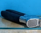 Better Homes & Garden Garlic Press Heavy Weight with Built In Cleaner Thanks for looking. This heavy weight garlic press comes with a built-in cleaner to make pressing garlic & other herbs a breeze. The black & silver stainless steel material adds a touch of mid-century modern style to your kitchen. This garlic press is easy to use & clean. It is an original piece from Better Homes & Garden & is perfect for any adult who loves cooking. This garlic press is a great addition to your flatware and cutlery collection. This garlic press is in great condition. It measures about 7” H, 2” L & W & weighs 12.6 oz. All measurements are approximate. See pictures. A-42