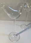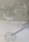 Two beautiful, 8" tall, clear bar ware set of two bird shaped glasses stems are 3" high base is 3" wide no chips, cracks or breaks, see photos for details
