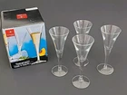 Elevate your drinking experience with these Bormioli Rocco Toscana schnapps glasses. The four-piece set is crafted in Italy and features with a clear glass material. Perfect for all occasions, these glasses have a 2 oz capacity and an item height of 5.75 inches. Each glass weighs 2.9 oz. The modern and traditional style of these shot glasses is timeless and elegant. They are machine washable and dishwasher safe, making cleaning up a breeze. The set includes four schnapps glasses and is perfect for a service of four. Add a touch of sophistication to your barware collection with these Bormioli Rocco Toscana schnapps glasses. NOS
