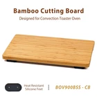Bamboo cutting board sitting on Smart Toaster Oven (Oven Excluded): Designed to be compatible with Breville BOV900BSS and Wolf Gourmet WGCO150S. Sits steadily on the oven, protects cabinets from being damaged and protects family and pets from getting hurt by heat. Beautiful and clean Board without any engraved texts or logo. Heat Resistant and Anti-slip feet: 4 silicone feet raise the cutting board 0.4” off the oven, create an airflow channel to avoid overheat damage to the oven and also keep the board steady, no sliding. Creates extra space over the hot surface, store on it oven accessories such as mitts, liners, pans, bread baskets, etc. Heat resistant design, stay strong and safe on top of the oven. Won't warp nor crack. A solid cutting board, also a serving tray at hand for fresh hot cookies, bread coming off the oven. The side handles make it easier to grab. Wonderful gift for any family using toaster ovens on daily basis. It might be compatible with other oven models: The dimension enclosed by 4 silicone feet is 18 * 9.5", please measure your oven surface and make sure all 4 feet could sit on it.