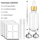 eBay 2 oz Dropper Bottle, Clear Glass Eye Dropper Bottles with Golden Cap for Essential Oils, 24 pack Tincture Bottle with Labels and Funnel High Quality Material : Made of thickened glass, beautiful golden Aluminum alloy lids and corrosion-resistant silicone tops. Useful Accessories: Funnels help fill liquids effectively. Long pipettes help dispense and drop oils precisely. Labels help mark liquids organized. Ideal for Travel : The portable size makes it perfect for travel, conveniently fits in your purse or carry on. No leakage risk due to the tight cap! Multi Use : Great for DIY essential oils, colognes, tincture, cosmetics, perfume oils, beard oil, hair oil, chemistry lab chemicals or other liquids. Safe Package : Bottles are packaged in grid-shaped partition with sponge surround and thick carton box to prevent damage in transport.