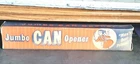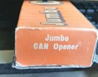 Unusual item. JUMBO CAN OPENER. (for big cans???) Box as pictured, has damage on one end and is faded on one side. Great box from the 40-50s 12 1/2" X 13/4" X 1 1/2"