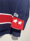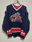 Show your support for the Columbus Blue Jackets with this vintage men's NHL hockey jersey by CCM. Made with high-quality materials, this jersey is perfect for any fan of the National Hockey League. The jersey features the team's iconic logo and comes in a size XL. Whether you're watching the game at home or cheering on the team at the arena, this jersey is sure to make a statement. It's officially licensed and perfect for regular season games. The 18 oz capacity ensures a comfortable fit, and the blue color is sure to turn heads. Don't miss out on the chance to own a piece of NHL history with this vintage hockey jersey.