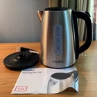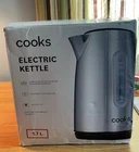 Buy it now is a Cooks Electric Kettle 1.7L. Quickly and easily boils a full 1.7L in minutes. Cordless Kettle separates from 360' power base for handling and serving. Auto shut off, brushed stainless steel exterior, drip free spout, clearly marked fill lines. Wattage is 1500w. The base material is 100% stainless steel. Hand wash only. It is 9.5" high by 8.9" wide by 6" deep. See pictures. Any quesdtions please ask.