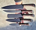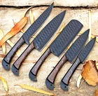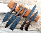Making Method: HAND MADE Blade Length: 3.5" TO 7.25" INCHES Brand: M DAMASCUS Personalize: No Color: Black Type: Chef's Knife Material: Carbon Steel Handle Material: WOOD HANDLE Set Includes: Chef's Knife, Cleaver, Fillet & Larding Knives, Steak Knife, PARING KNIFE Food Compatibility: Candy, Cheese, Fruit, Meat, Salad, Universal, Vegetables Blade Edge: VERY SHARP Number of Items in Set: 5 MPN: N/A Features: With Handles