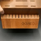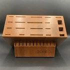 **knife block is in great preowned condition; please see photos! Keep your kitchen organized and stylish with this CUTCO Ultimate knife block storage. Made of solid wood in the USA, this 32 slot block is perfect for storing your collection of knives. The traditional design features a beautiful cherry color and oak wood tone, making it a great addition to any kitchen decor. Each knife holder in this block is easy to clean and comes with a personalized name label. Measuring 8 inches in height and 11 inches in width, this knife block is perfect for any kitchen. With its easy-to-use design and high-quality construction, this CUTCO knife block storage is a must-have for any home cook.