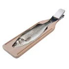 CUTTING BOARD FOR CLEANING FISH WITH A CLAMP MADE OF BEECH LUX 60X14 CM WITH GROOVES ALONG THE EDGES (23.6x5.5 IN) The fillet board with clamp for fish cleaning is an excellent gift for any housewife or experienced fisherman. This board is practical and convenient, allowing you to easily and quickly clean and process fish. With the special clamp on the board, you can secure the fish by its tail, making the cleaning process swift. The board is compact and convenient, easy to store and carry along. This board is made from environmentally friendly Carpathian beech wood, with a moisture content not exceeding 8-12%. The wood undergoes a full drying process, is processed, and the finished product is treated with food-grade oil. Proper surface treatment is crucial for protection against microbes and mold. As a result, these boards do not crack, swell, or warp over time. Wooden boards have antiseptic properties, so bacteria on their upper layer, which is most exposed, do not multiply and perish. The Luxury model features grooves along the edges and rounded corners, unlike the regular model of the same size. Specifications: Board material: Carpathian beech wood Tail clamp material: Steel Grooves along edges: Yes Rounded corners: Yes Dimensions: 60 x 14 x 1.8 cm (23.6 x 5.5 x 0.7 inches) Weight: 1 kg (2.2 pounds) Manufacturer: Ukraine