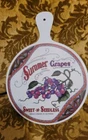 CUTTING BOARD / TRIVET, ROUND - SUMMER GRAPES. 9.5" across. In good used shape