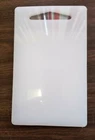 DURABLE HARD PLASTIC WHITE 6" x 10" x 1/2" PE CUTTING BOARD, 1/2" THICKNESS WITH EASY TO CARRY HANDLE (( 10" LONG WITH HANDLE )) (1) COMMERCIAL GRADE (2) FDA/NSF/USDA APPROVED (3) SANITARY AND CLEANS EASILY WITH DETERGENT AND WARM WATER (4) WILL NOT CRACK, SPLINTER, SWELL, WARP (5) KEEP AWAY FROM OPEN FLAMES (6) WILL NOT BLUNT CUTTING EDGE OF KNIFE (7) WILL NOT ABSORB LIQUIDS OR ODORS
