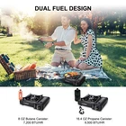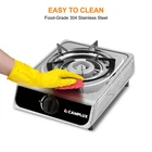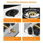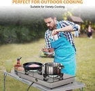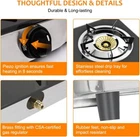 This gas stove is designed with classic tempered glass and looks simple and elegant. Use 0.28" thick tempered glass, not fragile and easy to clean. Using piezoelectric ignition, no need to prepare matches for ignition. Gas burner is 9,500BTU×2 + 2,600BTU , can quickly heat up food, saving you more time to spend time with family and friends Three burners camp stove with the new stove frame, the woks and pans can be placed steadily without slipping. This portable stove propane package included a durable regulator with a 5 ft hose. You only need to connect a propane tank. It's easy to install and use. Three burners propane stove uses high-quality manufacturing, cast-iron burners, enamel trivet, and non-rust 0.02" thickness #304 stainless steel base for long-lasting use. Item Details Dual Fuel Propane & Butane Stove with Carrying Case Dual Fuel Design - The propane stove can connect an 8 oz butane canister (7,200 BTU/HR) or 16.4 oz propane canister (6,500 BTU/HR) Safety Protection - Portable gas stoves have CSA Certification requirements for North American safety. Built-in overpressure protection and gas leakage protection device Portable - 3.31LB, 3.14*12.99*11.22", lightweight and compact. Including a carrying case, easy to carry Easy to Use - The portable stove use piezo-electric ignition, no need to use matches or lighters. Lock the gas canister position and turn the control knob to the end with a clicking voice Included Components - CSA certification gas regulator to connect 16.4oz propane cylinder(not included), carrying case, instruction manual Single Burner Propane Stove Stainless Steel 9,800 BTU/Hr Heat Output - Gas stove burner is made of 392°F high-temperature cast iron burner and use piezo ignition Easy to Clean - Camping gas stove is made of food-grade 304 stainless steel, which is corrosion-resistant and easy to clean Hold Woks & Pans Steadily - Portable propane stove frame can hold the woks and pans to be placed steadily without slipping. Recommended diameter 5-8.6" pots Easy Installation & Use - Outdoor stove with CSA certified gas regulator and 5ft hose, easy to use, no need to buy additional accessories Compact Size & Lightweight - 10.83×15.16×5.31" compact size, weight 4.37 lb lightweight 2 Burners Camping Stove Stainless Steel Double Burner Design - Portable Gas Stove total output 19,600 BTU can cook two dishes at the same time, save more time to stay with your family Easy to Clean - 2 burners propane cooktop is made of food-grade 304 stainless steel, which is corrosion-resistant and easy to clean Hold Woks & Pans Steadily - Gas burner stove's frame can hold the woks and pans to be placed steadily without slipping. Recommended diameter 5-8.6" pots Easy Installation & Use - Gas stove burner with CSA certified gas regulator and 5ft hose, easy to use, no need to buy additional accessories Compact Size & Lightweight - 27.95×15.16×5.31" compact size, weight 7.91 lb lightweight Single Burners Camping Stove Tempered Glass 9,800 BTU/Hr Heat Output - Gas stove burner is made of 392°F high-temperature cast iron burner and use piezo ignition Easy to Clean - The tabletop gas stove has a classic design with 0.28" thickness tempered glass for effortless cleaning Hold Woks & Pans Steadily - Portable propane stove frame can hold the woks and pans to be placed steadily without slipping. Recommended diameter 5-8.6" pots Easy Installation & Use - Outdoor stove with CSA certified gas regulator and 5ft hose, easy to use, no need to buy additional accessories 2 Burners Camping Stove Tempered Glass High Heat Output - Propane gas stove powered by 19,000btu/hr with auto ignition, no need for cumbersome start-up and heats up quickly Easy to Clean - The tabletop gas stove has a classic design with 0.28" thickness tempered glass for effortless cleaning Propane stove with the new stove frame, the woks and pans can be placed steadily without slipping. It is recommended to use a pot with a diameter of 5-8.6", which can heat food faster and more evenly High Quality - The shell of 2 burner propane stove is made of #304 stainless steel, the thickness is 0.02", and the gas hob foot is made of abs Convenience - 2 burner cooktops with CSA certified gas regulator and hose, easy to use, no need to buy additional accessories 3 Burners Camping Stove Tempered Glass 21,600BTU Total Power - Propane cooktop has two 9,500BTU burners (Diameter of pan 7-10.2") and one 2,600BTU burner (Diameter of pan 3.9-6.2") Simultaneous Cooking & Saving Times - Outdoor gas stove can meet your daily cooking needs, such as stewing, deep-frying, stir-frying, steaming, or roasting Portable & Mobile Design - Gas stove burner ideal for camping trips, gatherings, or other outdoor cooking. Product dimension(W×L×H): 28.5×15.2×5.1" Effortless Cleaning - Portable gas burner is made of tempered glass, non-toxic, high-temperature resistance, and wear-resistant insulation. Easy to remove pot support and drip pan to clean Easy to Use - Indoor propane stove with auto-ignition without waiting and gas adjustment flexibly and precisely. The ignition is controlled by a push-type rotary switch which can prevent accidental touch by children Premium Material Tempered Glass Burners Stove The gas stove is finished with 0.28" thick tempered glass The soup plate is made of stainless steel The fire cover is made of brass powered by 19,000btu/hr with auto ignition Regulating Temperature Adjustable Knob Each burner of the outdoor propane cooktop corresponds to each control knob, you can adjust the temperature anytime. Quality Housing #304 Stainless Steel Finished Body & Brass Fitting The housing of the gas range stove is made of 304 stainless steel with a thickness of 0.02". Non-slip & Anti-push ABS Material Stove Feet Strong resistance to thrust Placed stably Not easy to slip This Position Must Be Aligned Important Tips After receiving the gas stove, please check the bottom of the gas stove, the air intake adjustment board and burner must be aligned.