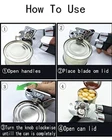 Can Opener, 3-in-1 Multifunctional Tin & Can Opener, Manual Kitchen Tool, Professional Ergonomic Heavy Duty Safety Manual Can Opener for Seniors With Arthritis At Hand Product Details Color: Black Brand: WEILUXU MPN: Does not apply UPC: Does not apply EAN: Does not apply Color: Black Material: Plastic handle Brand: WEILUXU Size: One Size Fits All Blade Material: Stainless Steel Color: Black Material: Plastic handle Brand: WEILUXU Size: One Size Fits All Blade Material: Stainless Steel Operation Mode: Manual Manufacturer: WEILLUXU Package Dimensions: 8.23 x 2.48 x 2.05 inches Item Weight: 7.4 ounces Date First Available: December 15, 2021 SAFE AND HYGIENIC --This can opener is made of the highest quality food grade stainless steel and BPA Free plastic. It has a strong body, will not bend or break, and will not infiltrate harmful chemicals into food. It is safe and hygienic to use. ERGONOMIC HANDLES --This can opener is durable and designed with ergonomic handles to provide a sure grip. EASY-TURN THUMBSCREW -- With smooth-turning thumbscrew mechanism not too much wrist pressure needed. Operates cleanly and smoothly hassle free! A great way to get any can open in style, add this opener to your kitchen for a powerful accent that gets the job done. SHARP STAINLESS STEEL TEETH -- A side-cut lid will not fit into the body of the can. Plus, a side-cut can opener's cutting teeth never actually contact the food.Its a great choice if you're buying for an elderly member of the family or are just tired of fishing top-cut can lids out of your food. MULTIFUNCTIONAL CAN OPENER--It can open cans in all shapes and sizes. Open cans with ease, lift lids in a jiffy, open bottles, and lever or loosen a can lid in a jiffy without injuring your hands with our 3- IN-1 hand can opener. built-in bottle opener so you can easily pop open your favorite beverages with ease and save space in your drawers. HAND WASH ONLY -- Hand wash with warm water and a mild detergent. Rinse and dry immediately. HOW TO USE: 1.Open the handles and position the rim of can between the blade and the gear. 2.Squeeze the handles firmly to pierce the can. 3.Twist the knob clockwise until it cats around the entire lid. 4.Open the handles to release the lid. 5.After usage wash the opener with water, hand wash only. 6.Dry the opener thorougly. NOTICE: 1.Please keep the product out of reach of children. 2.Do not use the product for purposes other than those specified. 3.Clean the can opener with water and detergent after each use.After cleaning ,dry the product with a dry cloth or paper towel and store it.