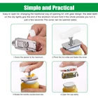 Product Feature π Material : This cap opener is made of high-quality plastic and stainless steel, which is strong and durable, not easy to deform and rust, and has a long service life. π Simple and Practical : Easy to open the lid, changing the traditional way of the opening lid, with gear design, the steel teeth on the clip tightly grip the end of the stubborn lid and hold it the whole process you turn it, just a few seconds The cover can be opened easily, saving labor and time. π Applicable : Suitable for 0.98-3.93 inch can lids, the distance of the decapper can be adjusted according to the different sizes of the lids. π Easy to Use : Just open the can opener to the maximum state, after adjusting the distance, hold the handle and rotate the lid counterclockwise to open the lid, which is easy to use. Product Specification Type Can Opener Color White Material Stainless Steel, Plastic Size 82x41mm (3.23x1.61in) Suitable for For 0.98-3.93 inch can lids Package Included π 1 x Stainless Steel Cap Opener Location Descriptions To improve your buying experience and ensure fast delivery, Your order will be shipped from the warehouse located in either new jersey or california that is closest to your address. If you have any questions, Please contact us. Thank you for your support !
