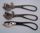 Can Opener Cast Iron Handle Steel Blade 2 Neverslip & 1 Unmarked Lot of 3 VTG This is a lot of 3 vintage can openers, each with a cast iron handle and steel cutting blade. The two marked “NEVERSLIP” also have a bottle opener of them. The unmarked one has a painted black handle. Pre-owned. These 3 can openers look old and are old. They have scratches and patina. The black painted handle has ch ips in the paint. From the estate of our Uncle Paul, born in 1927, who collected all kinds of things in Denver, Colorado, from the mid-1950s until his untimely death in the mid-1980s. It’s going to take us a LONG time to liquidate the estate, so we invite you to keep watching for our listings.