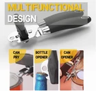 FEATURES: 【Smooth and Safe】- Protect & ensure your fingers safe, smooth and no sharp edge cover make your fingers more safety. Feel free and safe to use by yourself and even your children! 【High Quality Material】- Made from high-quality safe ABS resin stainless steel accessories TRP handle. Ensuring it won't rust or break over the time! The compact and smart design makes it a perfect fit for your kitchen drawers and cabinet. 【Ergonomic Design】- A big easy turning knob and a good comfortable crank handle makes cutting open cans effortless, fast and simple.Portable and Light Weight: Appropriate size makes this opener easy to carry when you are traveling or camping, it can open all kinds of round and oval cans. 【All-in-One Design】- The multifunctional can opener built-in bottle opener is designed for beer soda and other bottles with caps meet all your needs, The celebratory beer and bottle drinks can be easily opened with a simple pry with the hook. 【Easy to Carry & Store】- It is also convenient for you to hang or storage it with the hole on the handle. 【Stylish & Durable】- The heat-resistant, high-quality chrome head holds up to rigorous use. 【Easy to clean】- When clean the opener, you just need to rinse it under running tap water. SPECIFICATIONS: Material: ABS resin stainless steel accessories TPR handle Color: Black weight:160g /0.35lb Size: 19cm / 7.48 in PACKAGE INCLUDES: 1 * Smooth Edge Can Opener