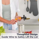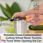Safe Cut Manual Can Opener Open cans safely and quickly with the Safe Cut Can Opener. This handheld opener has a unique design that easily opens cans, leaving no sharp edges. The guide wire lifts the lid once it's fully open, allowing safe removal. Rotate the knob to free the lid from the opener – with smooth edges, the lid can be reused for short-term storage. Its sturdy non-slip handle and big knob offer a safe grip. This can opener has a hard stainless steel blade and a thick guide wire for durability and long use, plus it's easy to clean. Comfortable Turning Knob The big turn knob is tailored for your fingers and designed so it won't come off easily. Safe Lid for Reuse The side-cut opener leaves a smooth edge on the lid, enabling its reuse. Simple to Store Includes a hanging hole for effortless wall storage. Hassle-Free Cleaning The stainless steel blade and handle rinse clean with water and won't rust. How to Use the Safety Side-Cut Can Opener 1) Twist the knob clockwise to secure the gear and blade on the can edge. 2) Keep turning clockwise to make the blade cut through the can edge. 3) Twist the knob in the opposite direction to detach the blade from the can lid. 4) Take off the lid which can be replaced later. ✅RAZOR-SHARP STAINLESS STEEL BLADE: manual can opener has a sharp and durable stainless steel cutting wheel that easily cuts through any can. Hand can opener is rust-resistant and will reliably serve you for years. ✅STRONG AND RELIABLE DESIGN FOR EFFORTLESS CAN OPENING: Discover effortless can opening. With its extra-large turn knob, our easy can opener simplifies can opening, working with your motion, not against it. Its robust patented design ensures smooth cuts, while the oversized handle provides an easy grip. It works perfectly as right- and left handed can opener for adults. ✅SOFT TOUCH GRIP: Experience comfort with can openers slip-resistant, cushioned handle. Offering a gentle touch, it enhances your grip, making can opening a breeze. Its extra-large design absorbs pressure, ensuring an effortless and comfortable can opening process. ✅PERFECTLY SMOOTH CUT: Our can opener smooth edge effortlessly attaches to the can's lip, securing it in place for a precise, continuous cut. Say goodbye to jagged edges and enjoy smooth, safe can opening every time. ✅LIFETIME WARRANTY - 100% satisfaction with our lifetime warranty, covering any manufacturing defects or issues. Choose our best can opener, camping can opener, hand held can opener, can opener manual heavy duty, and enjoy unparalleled quality and peace of mind. Plus, you'll get the BONUS - exclusive "Healthy Cooking Tips" ebook - FREE!