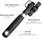 Can Opener Smooth Edge Manual, Handheld, No Sharp Standard, Black Product Details Color: Black Material: Stainless Steel Brand: RICKUNCL Size: Standard Blade Material: Stainless Steel Product Dimensions: 2.3"W x 8.2"H Item Weight: 3.42 Ounces Operation Mode: Manual Manufacturer: RICKUNCL Number of Items: 1 Item Weight: 3.42 ounces Country of Origin: China Item model number: RICKUNCLEN4 【SAFE AND EFFORTLESSLY OPENS CANS 】Say goodbye to accidents thanks to the non-slippery soft handle. RICKUNCL's Can Opener cuts the tin’s lid smoothly in the lid side, The side of the safety manual can opener is without leaving jagged sharp edges, Smooth and no sharp edge cover that will easily open all types of cans. 【HIGH QUALITY MATERIAL】This Can opener is made from a food-safe stainless steel blade and extremely durable sturdy, the material passed FDA testing, ensuring can opener won't rust or break over time. 【EASY TO CARRY FOR OUTING】 Appropriate size makes this opener easy to carry when you are traveling or camping, It can open all kinds of round and oval cans. It is also convenient for you to hang or storage can opener with the hole on the handle, The compact and smart design makes can opener a perfect fit for your kitchen drawers and cabinet.