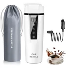 Portable And Multiple Temperature Options- car kettle is small and lightweight, with the functions of boiling water and keeping warm. The 12V/24V mini electric kettle keeping warm function can set the temperature range within 86-203℉ by "Temp+" or "Temp-". Meets your needs for coffee, tea, milk and more. Truck heated travel mug is designed for in-car use, so you can greatly enhance your sense of happiness in the car. Quality Materials & Enhanced Security- Travel water boiler for car made with food-grade PC plastic material (BPA-free) and 304 stainless steel inner liners to ensure the safety of drinking water. Travel electric kettle has a sealed rubber ring design, will not leak water when placed upside down. Car water heater can proof the dry-fire and heating up without water, allowing you to use it safely and worry-free. Upgrade Smart Screen- 12V/24V travel kettle equipped with a large LED display. Smart touch panel buttons to set the temperature to your preference and a clear on-screen temperature display. portable kettle for car will make your life smarter. Unique Design- portable electric kettle have a wide-angle flip-lid design and a small-caliber water outlet. Adapt to people's drinking habits, be anti-choking, and water is not easy to spill. The side plug design of the small electric kettle makes it easy to fit into a car cupholder.The integrated design means you can take it anywhere. Dual Voltage Switching- car heating cup automatically detects 12V–24V voltage and switches automatically, cigarette lighter plug and play, suitable for various cars and trucks.12V/24V mini water boiler, travel must-haves!