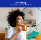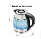 About this item FAST BOILING: Chefman kettles boil water faster! Boil your water in as little as 3 minutes for tea, hot chocolate, pour over coffee, and other hot beverages. REMOVABLE LID: Lift-out lid design creates a wide opening to allow for easier filling and cleaning of your water heater kettle. LED INDICATOR LIGHTS: Bright blue LED lights light up when kettle is boiling and shut off when water is ready. CORDLESS CONVENIENCE: Our cord-free portable hot water kettle electric for heating water allows you to serve guests in another room while leaving the base plugged in. EASY-GRIP: The 360-degree swivel base water warmer holds the cordless electric kettle in your preferred position for easy gripping and pouring. MESS-FREE POURING: The specially designed electric water kettle spout allows for an even pour every time so you don't have to deal with unwanted drips and spills. SAFETY SHUTOFF: When the boiling temperature is reached or water is gone, our hot water electric tea kettles automatic shut off stops the kettle tea pot heating for added peace of mind and safer boiling. GREAT GIFT IDEA: Need gifts for tea lovers? This hot water maker is perfect for birthdays, Father's Day, Mother's Day, wedding gifts, anniversaries, Christmas, and more. RESOURCES: cETL approved with advanced safety technology for long-lasting durability and a 1-year assurance provided by Chefman. 1500W/120V-RJ11-12 Specifications Features Automatic Shut-Off, Detachable Base, Water Level Indicator Brand Chefman Manufacturer Part Number RJ11-12 Manufacturer Chefman Color Stainless Steel Assembled Product Dimensions (L x W x H) 8.38 x 8.66 x 6.29 Inches