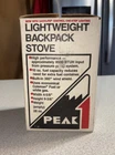 Coleman PEAK 1 Lightweight Backpack Stove Model 400A701 IN BOX Excellent used condition and works. Manual, burner, wrench, handle, aluminum case and box. Fuel is empty.