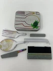 This NEW IN BOX collapsible Cutlery set includes Spoon, Fork, Knife, Straw, a cleaning tool and comes in a perfectly sized travel case. The cutlery is well made and stable, as the pieces screw together are designed to need the use of force to unscrew. This is the perfect travel cutlery set with case for your reusable cutlery for any type of trip!!! oh....and it's beautiful!!!!